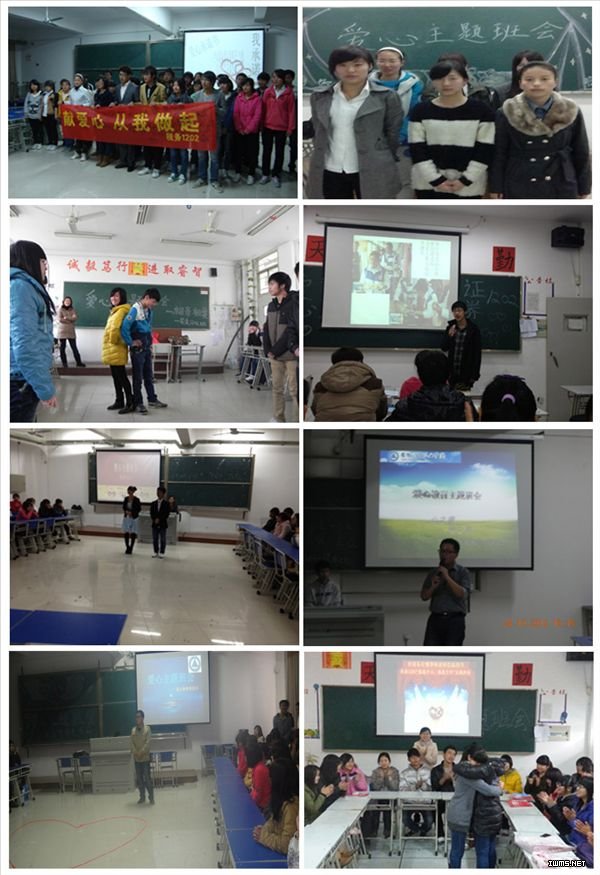 财税金融系2012级八个班级分别以“心之善,爱之芽”、 “献爱心,从我做起”,“爱让世界更美好”“感恩于心,感恩于行” “相亲相爱”等班会主题开展爱心教育活动。班主任老师根据各班实际情况,采用图片展示、视频播放谈观后感、辩论、朗诵、唱歌、小品、讲身边事等丰富多彩的形式,对学生进行爱心教育。一个个感人的故事,一个个精彩的瞬间,让同学们接受爱的洗礼,唤醒学生爱心意识,培养爱心精神。同学们深受启发,表示一定要从自我做起,从身边小事做起,让爱心永存心间,让我们的校园更加美丽,社会更加温馨、和谐。