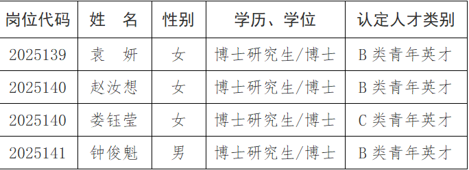 根据《安徽财贸职业学院2025年度公开引进事业编制高层次人才(博士)公告》和《安徽财贸职业学院高层次人才引进与管理办法》文件规定,经学院学术委员会审议通过,现将我校2025年度公开引进高层次人才(博士)人才类别认定结果予以公示。