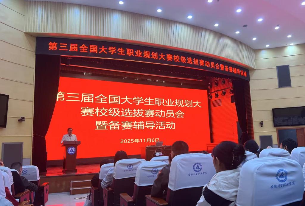 11月6日下午,学校在学术报告厅举行第二届全国大学生职业规划大赛动员会暨备赛辅导活动。学校党委委员、副校长胡戴新出席会议并作动员讲话,各二级院部相关负责人、部分参赛选手等参加会议。