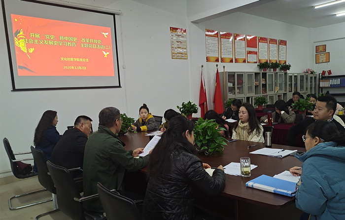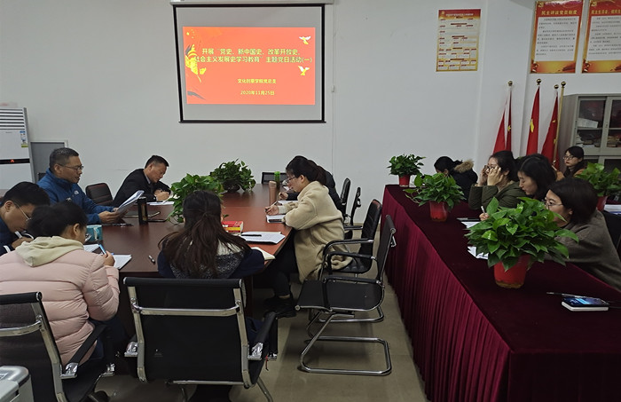 11月25日下午, 文化创意学院召开党史、新中国史、改革开放史、社会主义发展史及新冠肺炎疫情防控工作的重要讲话和指示精神第一次学习会,全体教师党员参加会议,文化创意学院党总支书记张克主持会议。