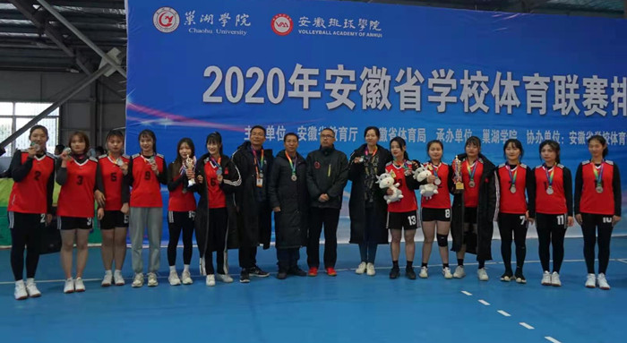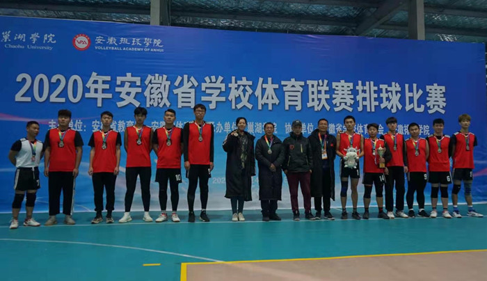 由安徽省教育厅、安徽省体育局主办的2020年安徽省学校体育联赛排球比赛(高职高专组)于12月15日在巢湖学院体育馆落幕。我院运动员队伍在教练员桑磊、郭成成的指导下,团结协作、不畏艰难、顽强拼搏,以坚强的斗志和良好的技战术在比赛中连克强队,最终男、女队均获得亚军。