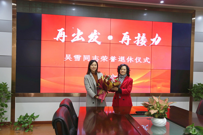 会上,胡戴新对吴雪老师三十多年来为学院教育事业发展做出的贡献表示衷心感谢,希望吴雪老师在好好享受退休生活之余,继续为学院财务工作发光发热,为学院事业发展添砖加瓦。同时勉励财务处全体员工以吴雪老师为榜样,学习她敬业好学、谦虚谨慎、甘于奉献的精神,努力做好本职工作,为学院发展做出新的贡献。