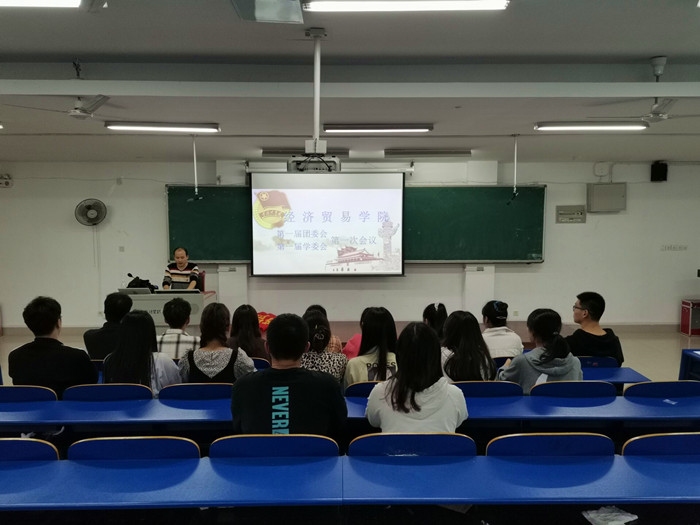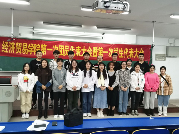11月18日下午,经济贸易学院第一次团员代表大会暨第一次学生代表大会在6202教室召开。经济贸易学院党总书记陶云龙、校团委学生事务发展中心主任孙峻峰、团总支书记张超、全体专职辅导员和120余名师生代表参加会议。