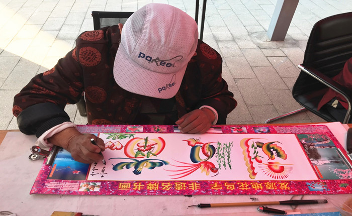 乐治庭老人是花鸟字画传承人,他画的花鸟字画深受在校大学生们的追捧,他将同学们的喜好和意愿通过花鸟绘画传统方式在纸张上来表达出来。