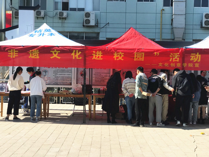 职业教育活动周期间,文化创意学院开展了“非遗文化进校园”活动。特邀请了花鸟字画传承人乐治庭、吹糖传承人康夫利、捏面传承人张少年、棕编传承人陈小玲、剪纸传承人包世烨一行5人来我系开展非遗活动。
