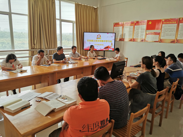 9月9日中午,行政第三支部召开支部大会,组织支部全体党员学习《习近平谈治国理政》第三卷和习近平总书记在纪念中国人民抗日战争暨世界反法西斯战争胜利75周年座谈会上的讲话。支部委员龚毅主持会议。