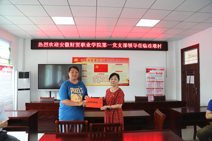 为化解疫情影响,支持连墩村贫困群众尽快投入复工复产,支部书记王永平代表行政第一党支部为连墩村送上2000元慰问金,资助贫困群众购买种苗,支持贫困户发展家禽养殖产业项目。