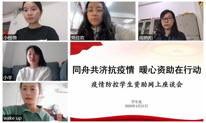 疫情发生以来,学校高度重视疫情防控期间的学生资助工作,4月21日中午,学生处通过“腾讯会议”组织召开学生资助工作线上座谈会。学生处、各二级学院学生秘书与32名新冠肺炎专项受资助学生座谈交流。