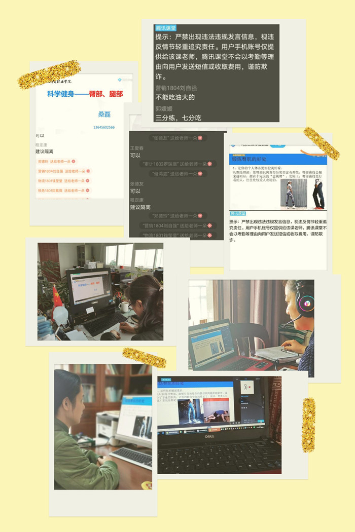 桑磊老师运用职教云课前讨论健身方式,课中运用腾讯课堂直播授课,向同学们介绍了臀部和腿部的科学健身方法,课后布置作业让大家利用打卡小程序进行居家锻炼并进行课后点评,教学内符合国家目前倡导的居家锻炼,收到了师生共同欢迎。
