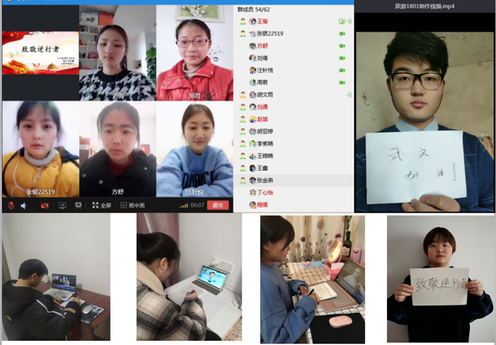每个时代都有可歌可泣的英雄,每个时代都有感人肺腑的事迹。岁末年初的新型冠状病毒疫情,已成为举国上下关注的焦点。在这场突如其来的战“疫”面前,一群“最美逆行者”迎难而上,逆“风”而行,坚守在抗战“疫线”,为全国疫情奉献力量。“用我之光,照亮他人”,这种精神更值得广大青年大学生学习。拘囿于学生处于居家状态,朱熹文旅学院各团支部各根据自己班级网课的排课情况,纷纷利用“QQ、微信、钉钉”等多媒体平台,以不同形式开展了具有特色的空中主题团课活动。如:有的班级通过屏幕共享组织学生观看“最美逆行者”的公益宣传视频;有的班级在QQ群内讨论交流疫情期间的模范人物与先进典型;有的班级开展“致敬逆行者”线上主题班会;有的班级还以制作抖音宣传短视频等形式向“逆行者”致敬,为“逆行者”加油呐喊。