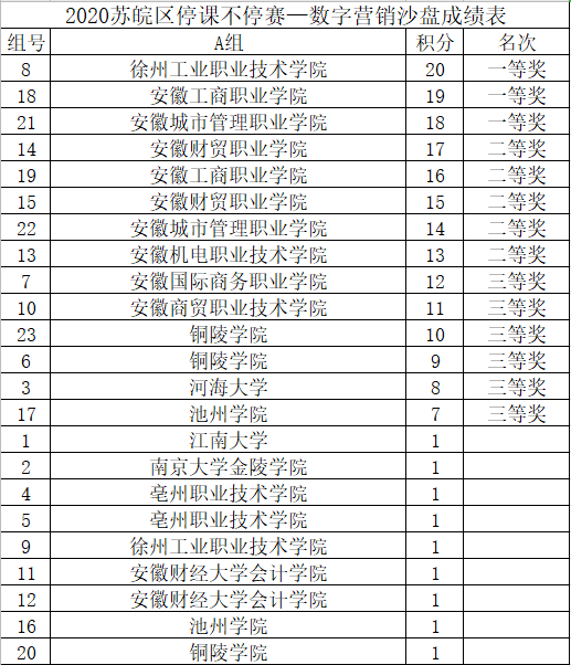 3月21日,由新道科技股份公司苏皖地区主办的停课不停赛系列赛事活动——苏皖数字营销沙盘争霸赛圆满结束。行知管理学院连锁经营专业组建两支参赛队代表我校参加了此次赛事,并分别夺得二等奖。