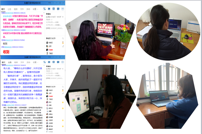 本次主题党日活动分为两个环节,包括“自主学习环节”和“讨论交流环节”。在自主学习环节,党员老师通过“学习强国”、新闻报道等媒体资源学习新型冠状病毒疫情发生以来的“先进模范”与“典型事迹”。讨论交流环中,各位党员老师纷纷结合自己的工作岗位在QQ群内积极发言,广泛交流。第一党支部书记沈东生说:“‘逆行者’抗击疫情的团结之战,是一次捍卫群众健康的全国之战,他们的奉献精神深深打动了我,作为一名党员教师,我要以他们为榜样,不忘初心、牢记使命,用自己行动践行自己入党时的宣言。”;第二党支部陈伟表示,我们每一个党员教师更应该在特殊时期认真履行好“停课不停教,停课不停学”的职责,做好课堂设计与教学,做好学生沟通和心理疏导,为同学们排忧解难。第三党支部丁敬芝说:“作为一名共产党员和教育工作者,我应该宣传、贯彻执行党中央所有关于疫情防控的政策部署,积极响应教育厅关于疫情期间开展线上教学的通知精神,让宅家‘抗疫’的学子停课不停学,用实际行动维护抗疫一线逆行者的劳动成果”。