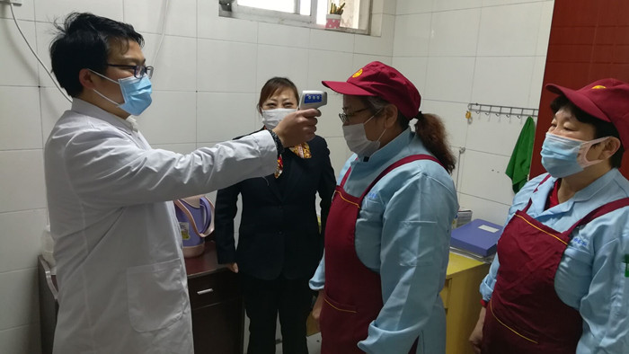 高度负责,抓实抓细,开展校园企业复工人员体温症状等监测工作。因校园物业企业及餐饮部分员工到校逐步开展复工复产工作,医务室工作人员按照合肥市疫情防控办规定每天定时对返校复工复出服务人员进行三次体温监测,问询每日身体健康情况和来源地,时刻关注他们的身体健康状况,指导他们做好个人防护工作,做好隔离和消毒措施,确保自身及校园安全。