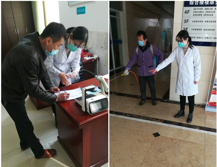 克服困难,在岗值班,指导校园物业开展防疫工作。自2月8日起,医务室克服困难,坚守岗位,每天都安排医务人员到校在岗值班,协调防疫物资采购,指导校园物业公司开展公共场所消毒、负责每日到校值班人员防疫物资领取等工作。