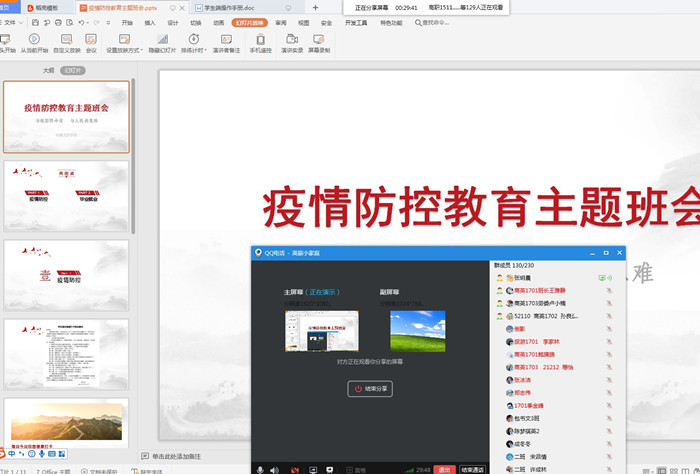 本次主题班会分利用网络技术,跨越空间障碍,发挥线上实时互动的优势,加强了同学们对于疫情防控工作安排的认识,激励了同学们对于战胜疫情的必胜决心,也让大家增强了纪律意识、防护意识,以更加积极进取、昂扬向上的青春姿态迎接疫情之下的新学期。(供稿:袁蛟娇 查婷婷 审稿:宋凌云)