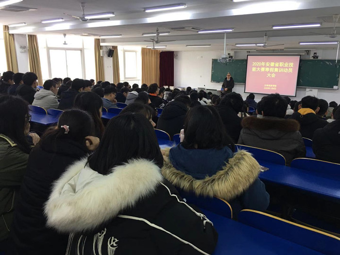 为积极准备2020年安徽省职业院校技能大赛,云桂信息学院于1月8日下午在6102教室召开寒假集训动员会。13个赛项的辅导老师及全体寒假留校集训的117名学生参加大会。