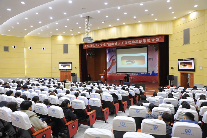 12月25日下午,安徽善之源公益教育发展中心、安徽商报、新安公益学院、学校关心下一代工作委员会及朱熹文旅学院联合举办的蜀山好人王香君励志故事报告会在学术报告厅举行,安徽商报“爱心面对面”栏目负责人邱红、安徽首位盲人大学生王香君应邀参加报告会,朱熹文旅学院院长刘葆、党总支副书记宋凌云及300余名师生现场聆听了报告。