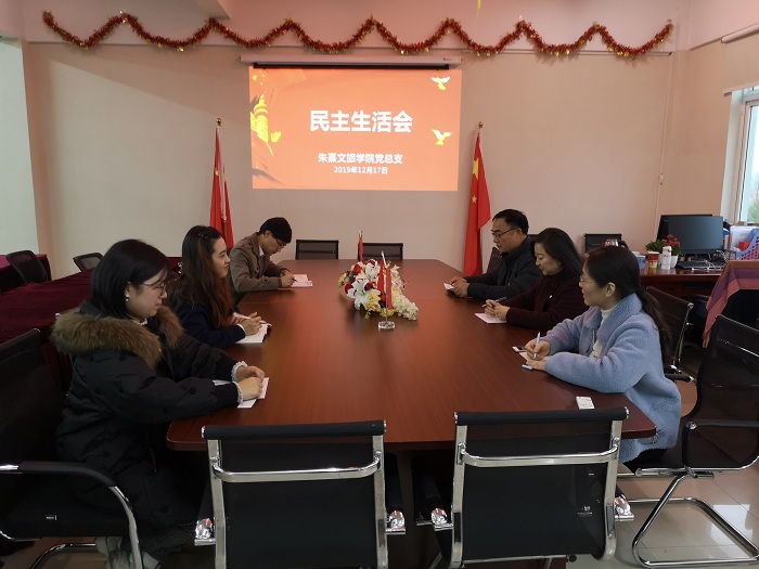 12月17日,朱熹文旅学院党总支召开“不忘初心、牢记使命”主题教育民主生活会。该院党总支副书记宋凌云主持会议,党总支副书记刘葆、纪检委员钟晓鹏、组织委员陈伟及宣传委员汪双参加了本次会议。