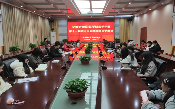 12月12日,校团委组织团学干部学习交流党的十九届四中全会精神,团委吕林全老师主持学习会。校团委、学生会主要学生干部参加会议并作交流分享。