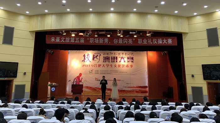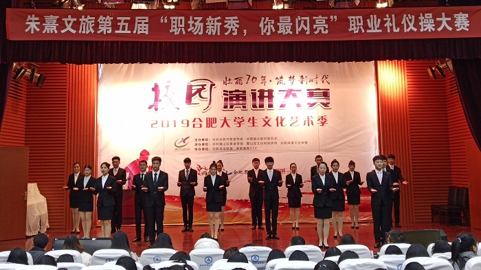 为进一步塑造大学生完美形象,提升大学生职业能力与素养,彰显校园文明礼仪风采,11月28日,朱熹文旅学院第五届“职场新秀,你最闪亮”职业礼仪操大赛在学术报告厅举行。校团委老师吕林全、朱熹文旅学院团总支书记汪双等老师担任评委,朱熹文旅学院2019级大一新生班级参加了比赛。