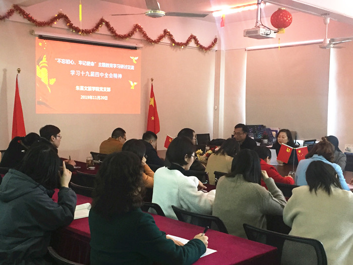 中国共产党第十九届中央委员会第四次全体会议于2019年10月28日至31日在北京举行。会议结束后,全国掀起了广泛学习领会“党的十九届四中全会精神”的热潮,朱熹文旅学院11月20在教师办公室开展了“学习党的十九届四中全会精神,践行党员初心使命与担当”为主题的学习研讨交流活动。朱熹文旅学院党总支副书记宋凌云组织活动。