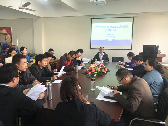 为贯彻落实全国教育大会精神和《国家职业教育改革实施方案》,近日,安徽省教育厅印发《安徽省职业教育改革实施方案》。11月13日下午,云桂信息学院组织全体教师集中学习研讨和交流《安徽省职业教育改革实施方案》(以下简称《方案》),副院长张成叔主持会议。