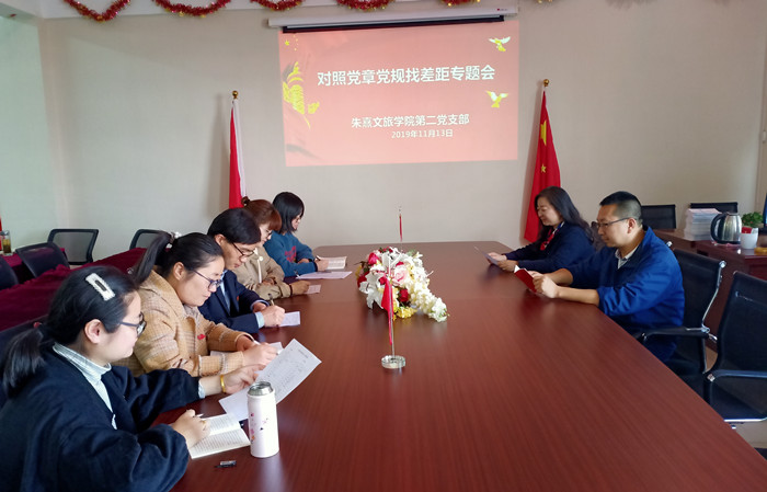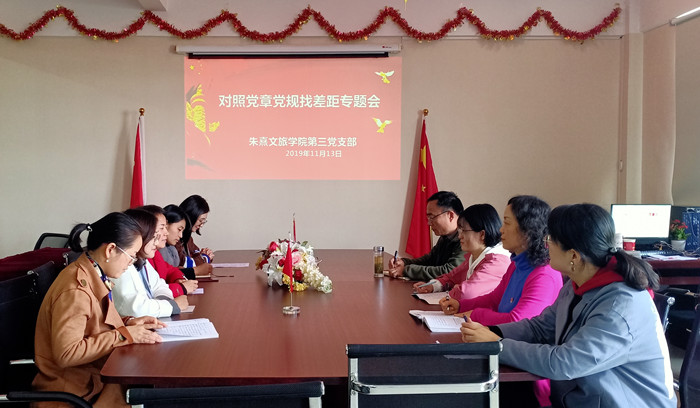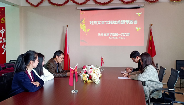 11月13日下午,根据学校 “不忘初心、牢记使命”主题教育安排,朱熹文旅学院党总支召开“对照党章党规找差距”专题会议。该院各党支部书记主持本支部专题会。
