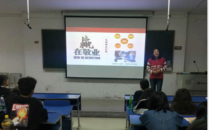 11月8日中午,宾虹艺术学院专职辅导员朱宇为2020届毕业生作了《恪守职业道德 弘扬敬业精神》主题讲座。朱宇通过案例引入向同学们介绍了职业道德的重要性,激励同学们坚定理想信念,树立正确的职业道德观,引导同学们在职业发展中,弘扬和传承工匠精神,营造劳动光荣的社会风尚和精益求精的敬业风气。