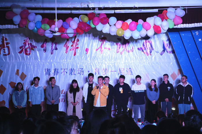 晚会内容丰富多彩,新颖别致,表演者们都尽其所能,各展所长。形式包括歌舞表演、小品、诗歌朗诵、群口相声等节目都为即将启程的学长学姐和辅导员老师们带来了一场场视觉与听觉的盛宴。小品《小璐金店》为现场增添了一抹亮色,展现了同学们的激情和活力;舞蹈《la vie en rose》点燃了现场的气氛,把现场的热情烘托到了巅峰;12位毕业生代表的发言感动全场师生,全体毕业班辅导员老师走上舞台为同学们送上祝福,让台下的毕业生们感动不已,纷纷跑上台拥抱自己的老师,场面十分感人。最后,伴随着这些祝福与不舍,晚会在小合唱《再见》中落下帷幕。