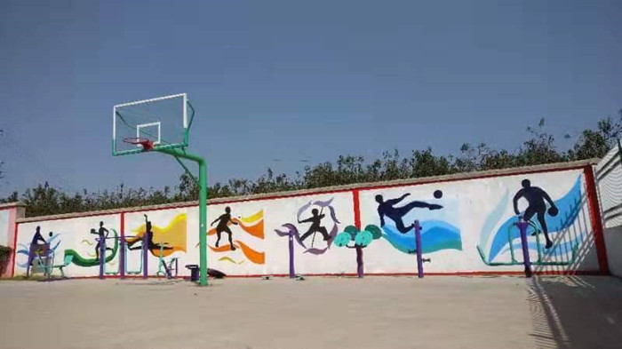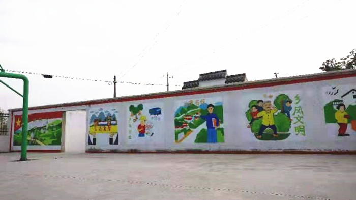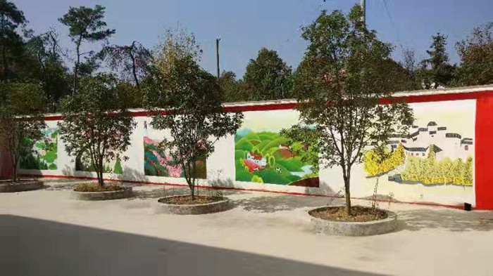 宾虹艺术学院结合当地村情实际,认真选材、精心设计,确定了乡村振兴、全民健身、绿水青山就是金山银山等3个墙绘主题。现场墙绘中,志愿者克服舟车劳顿,发扬敢于吃苦、乐于奉献精神,用自身所学所长,调配颜色、描边勾线、绘图上色,用“奋进之笔”将3面光秃秃的墙体,描绘成一幅幅生动的画卷,让整个村容村貌焕然一新,成为展现文明新风尚的靓丽风景线。
