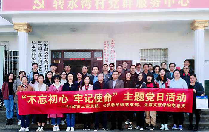 为贯彻落实中央、中共安徽省委和学校关于开展“不忘初心、牢记使命”主题教育各项部署,引导广大教师坚定理想信念,不断增强立德树人本领,在世界扶贫日的第二天,朱熹文旅学院党总支、公共教学部党支部和行政第三党支部共同前往舒城县阙店乡转水湾村,联合开展主题党日活动,进行脱贫攻坚专题调研,接受革命传统教育,并开展了捐赠图书、消费扶贫等系列社会服务活动。