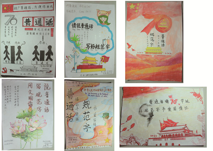 此外,宾虹艺术学院还在班级宣传栏张贴推普周宣传画,拉横幅,利用、微信、微博、QQ公众号、黑板报等多种渠道,开展推普宣传活动,让同学们在学习传统文化的基础上,感受中国文化的博大精深和普通话的魅力,推普工作形式多样,参与面广,同学们用普通话诵新中国七十华诞,用规范字书爱国情怀,让祖国的语言文字熠熠生辉。