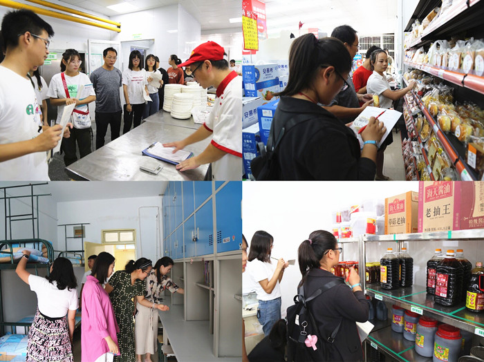 各组检查成员各司其职、严格把关,分别对三家超市进行了零食、水果、奶制品等保质期、新鲜度的检查,盘查了各超市营业执照及从 业人员健康证;对三家食堂的食品后厨加工过程、加工环境、餐具清洗消毒、从业人员卫生以及食堂食品留样状况等做了全面细致的检查。现正值秋燥时节,用电安全事故高发期,六栋公寓管理人员带领学生代表对宿舍违禁电器等进行了严格互查,对违禁电器逐一记录、整改,对学生进行安全意识教育;基建办对防护栏杆、配电系统、校园绿化、教室空调等进行了详细检查。