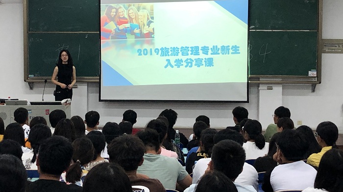 旅游管理专业新生专业教育活动邀请了我校旅游管理专业优秀毕业生——合肥景尚营销策划有限公司总经理吴琼作为嘉宾,校企合作完成旅游管理专业新生入学的第一课。旅游管理教研室主任钱晓慧分别从旅游管理是什么、干什么、学什么、怎么学四个方面对旅游行业进行了综合分析,对人才培养模式、课程设置、实训安排等进行了详细的介绍,让学生对接下来的专业学习有了深入的认识,并明确了学习要求。之后吴琼结合自己的学习和成长经历,分享了自己的职业感悟,勉励同学们要在自己的专业上主动学习、深入学习,做职业旅游人,不仅让2019级旅游专业新同学对本专业有了宏观的认识,也树立了学习的信心。同学们踊跃提问,积极发言,现场掌声不断。