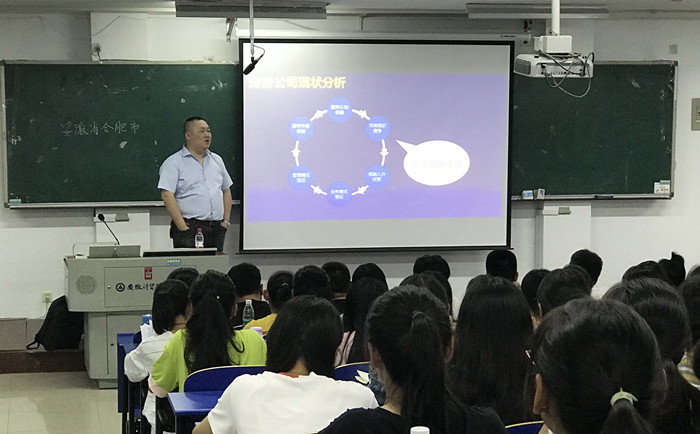 农金班新生在4406教室接受了专业教育:查静立足职业教育的特点,介绍了农村金融专业的发展历程和学历再提升途径,激励学生明确目标;民生银行合肥庐阳支行副行长陈业伟结合银行的涉农贷款业务介绍了农村经济的特点;优秀毕业生王振樾立足于寿县农村商业银行工作,从自身岗位出发讲述了金融企业的用人需求。
