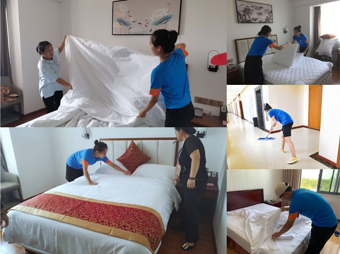 为了有效开展志愿服务工作,小岗干部学院后勤部主管首先对志愿者们进行了会务接待和餐饮客房等技能培训,然后将志愿者们分为会务组、客房组、餐厅组,根据组别分别前往对应的部门参加实践活动,与该学院的员工一道为参加培训的干部学员们提供迎宾礼仪服务、会务接待服务、客房餐饮服务。