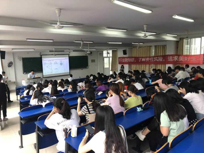 针对近期学生在网络平台上受骗典型事件增多现象,6月19日,大位会计学院联合九江银行在6201开展了防金融诈骗知识讲座活动,邀请九江银行合肥分行金潜支行张琦凡主讲。