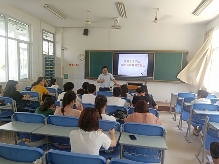 为深入贯彻落实我校第六届学生资助诚信教育主题月活动要求,宣传国家资助政策,让学生了解家庭经济困难学生资助政策,5月24日中午,宾虹艺术学院学生资助政策宣讲会在3104教室举行,该院党总支副书记张伟主持会议,在校生班级24名学生代表聆听了宣讲。