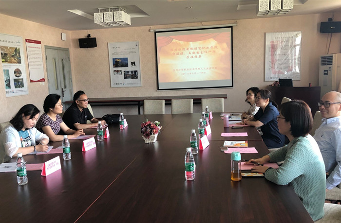 在苏州经贸职业学院的交流中,双方就课程教研、公共基础课与专业程的契合性以及人文素养课程建设进行深入交流。人文旅游学院、会计与国贸学院副院长分别介绍了人文课程与经济学课程开设情况,均表示公共基础课程的专业需求性、服务性、灵活性及创新性开设的基本理念。白帅敏博士重点介绍了该院人文素养课程体系的发展与创新,探索新时代下,中华优秀传统文化课程建设的客观必要性、教学模式,交流双方就此开展了积极、热烈的探讨。向诤老师重点介绍了课程教学中信息化教学与教学评价模式。