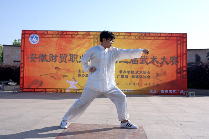 5月22日下午,由校团委、公共教学部主办,校武术协会承办的第二届校园武术大赛在学校露天剧场举办。来自全校128名同学,参加了长拳、太极拳、器械和集体四个项目的角逐。校总工会副主席许卫民、学生处处长薛卫敏、团委副书记王学峰等参加开幕式,公共教学部主任王静致开幕词。