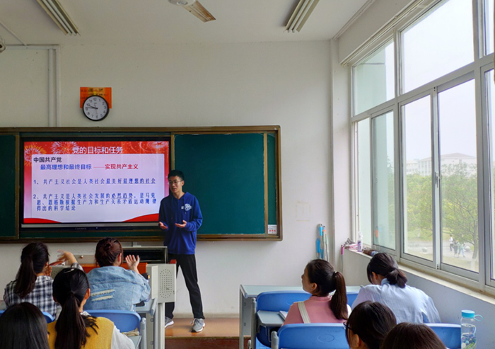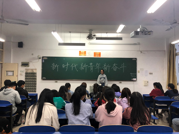 4月23日,朱熹文旅学院各班团支部纷纷利用班级QQ群对“青春心向党•建功新时代”主题活动进行广泛宣传与动员。当晚各个班级就纷纷开展了“新时代、新青年、新奋斗”为主题的口语训练交流活动。广大青年学生结合时代精神和所学专业阐述了自己今后奋斗努力的方向。4月25日,该院中特会组织全体成员观看《建党伟业》电影,通过视频更直观地让同学们深入了解共产党诞生的历史背景、艰苦奋斗的历程、伟大感人的事迹等历史内容,进一步引导广大青年学生珍惜当下大学时光,认真学习专业知识,努力奋斗,未来积极报效祖国。
