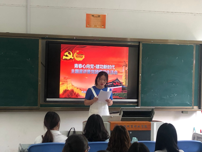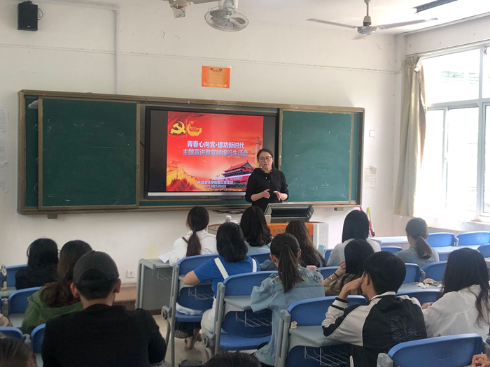 来自三个党支部的党员老师汤志飞、卫欣怡、张露,围绕党的理论、党史国史、形势政策、奋斗故事等与学生开展面对面宣讲交流,把党的理论讲清楚、讲明白,让青年听得懂、记得住、能运用,用“习近平新时代中国特色社会主义思想”引领凝聚团员青年,持续推进“青年大学习”行动。同时提出新时代的青年应具有什么新使命,并告诫学生一定要不忘初心跟党走,中国的未来属于青年,中华民族的未来也属于青年。