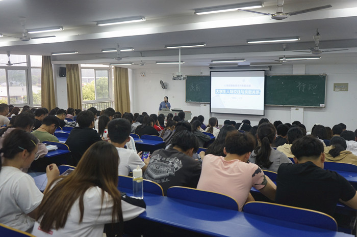 王思老师从大学生身边常见的学习生活、个人情感、人际交往、人格健康等疑问和困惑切入,向同学们讲解了人际交往是大学生成长与社会化过程中的重要组成部分。从动态和静态的二个角度,阐述在社会心理学中人际交往的两个方面的含义,并列举身边鲜活真实的案例,分析如何培养良好的人际关系,强调建立良好人际关系的重要性和必要性,不仅提升大学时期学习生活的幸福感,同时也为今后的学习、工作打下基础,要学会与周围的人保持良好的人际关系,做到求同存异、以诚相待、理性务实,培育理性平和、积极向上的健康心态。