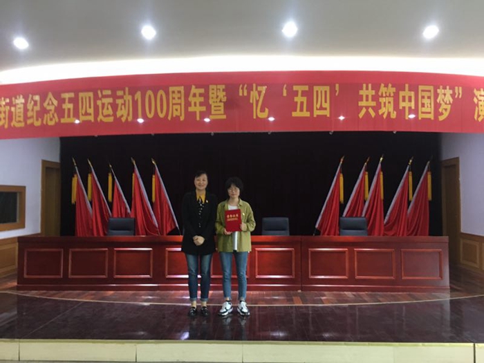 受合作社区合肥市蜀山区稻香村街道办事处邀请,4月24日,大位会计学院选派了会计1801班聂少君参加了主题为“五四运动100周年暨忆‘五四’共筑中国梦演讲比赛”,并在比赛中荣获一等奖。