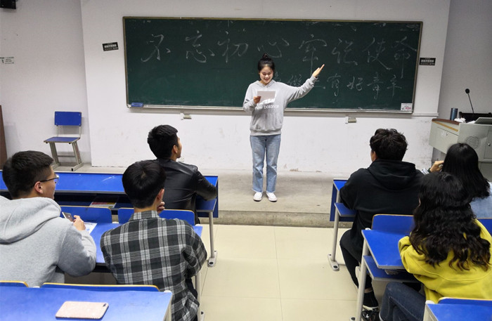 本次主题团日活动由“不忘初心、牢记使命”争做“三有”好青年主题团课和主题口语训练两个部分组成。4月16日,25个在校班级组织开展主题团课活动,以习近平新时代中国特色社会主义思想为指导,深入学习贯彻党的十九大和十九届二中、三中全会精神,深刻领会习近平总书记关于青年工作的重要思想,各班级通过朗诵、演讲等形式从新学习党的十九大精神、团章和青年文明号等知识,扎实青年团员的基础,提升内涵建设。