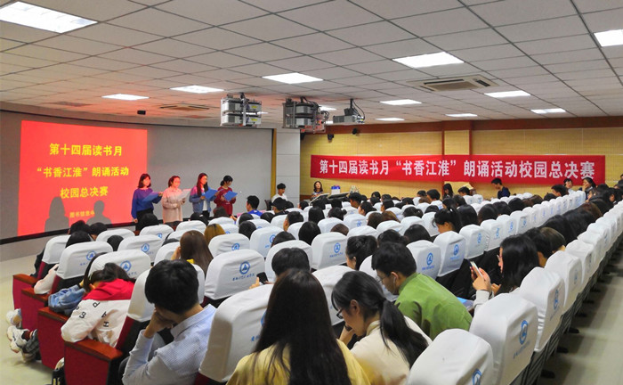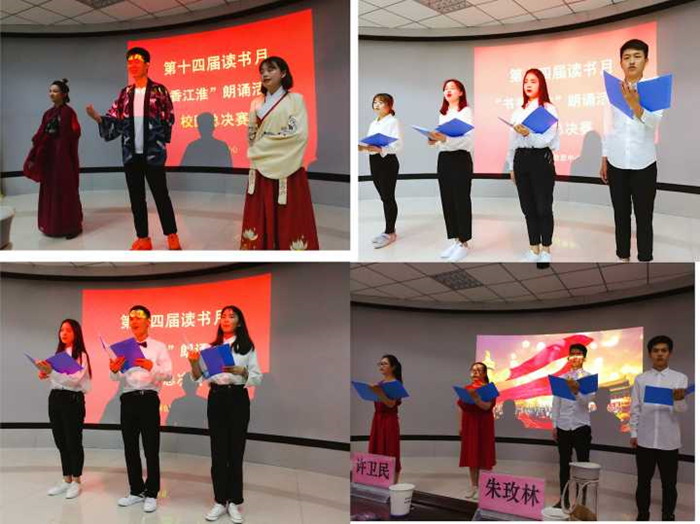 4月23日是第24个世界读书日,图书信息中心响应《中国图书馆4.23全民阅读活动倡议书》的号召,弘扬中华优秀传统文化,在3D实训室举办了第十四届读书月活动之书香江淮“经典在我心中”朗诵活动校园总决赛。校工会副主席许卫民、纪检监察处副处长朱玫林,团委副书记王学峰、图书信息中心副主任丁联和藕海云老师应邀担任本次大赛的评委。
