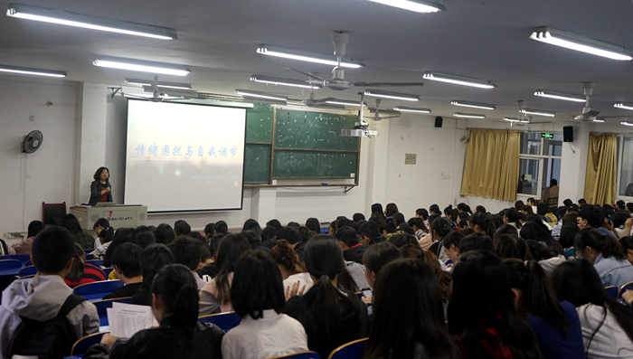 4月15日晚首场讲座在6103教室开讲,心理健康教育中心心理咨询师李杉杉老师作题为《情绪困扰与自我调节》专题讲座,来自大位会计学院和公共教学部270多名学生代表聆听了讲座。