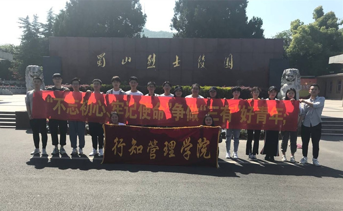 在行知管理学院团总支书记左艳琼老师的带领下,团学干部们来到了大蜀山烈士陵园。祭奠仪式开始,在庄严的国歌声中,在烈士陵园纪念碑前,行知管理学院的师生们队列整齐,庄严肃立,表达着对先烈的崇高敬意。紧接着,同学们向纪念碑敬献花篮并集体默哀,寄托对革命烈士们的悼念与哀思。团学干部代表陈梦梦同学发言,抒发对革命先驱的缅怀之情。庄严肃穆中,全体师生瞻仰了烈士纪念碑,并参观了革命烈士纪念馆,聆听着烈士们的英雄事迹。同学们在纪念馆各种历史资料中体会到中国人民顽强不屈的奋斗精神,革命先烈令人敬佩的英雄气概,深切体会到今天生活的来之不易。大家纷纷表示,要继续发扬老一辈无产阶级革命家的光荣传统,不忘初心,牢记历史赋予新时代青年的使命,在学习中動勉努力、在工作上积极进取、在生活中勇往直前,心中满腔热血,必将奋发图强,实现伟大的中国梦。最后,同学们在学生会主席陈王龙同学的带领下庄严宣誓:“缅怀先烈,学习英雄;继承遗志,发扬传统;不怕困难,勤奋学习;坚强生活,奉献社会。”