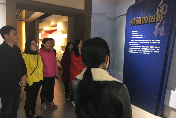 党员老师们跟着馆内讲解员的步伐,走过80年代“希望的田野”,聆听90年“春天的故事”,感悟21世纪的“美好新时代”,馆内充满回忆的图片文字和再现的场景令老师们思绪翻转、感慨良多。