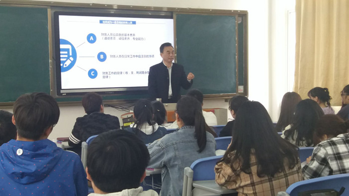 汪东锋首先从财务人员应具备的基本素养,向同学们介绍财务工作中应具备的道德素质,诚信素养,专业能力,勉励同学们在新会计准则实施情况下该不断加强专业知识学习,提升自身的职业素养。随后结合自己的工作实际向同学们介绍财务人员在日常工作中应注意的事项,与同学们分享了自己参加企业招聘的经历,讲述在求职过程中同学们该如何表现,引导同学们在校期间应努力学习,为自己走上工作岗位做准备。